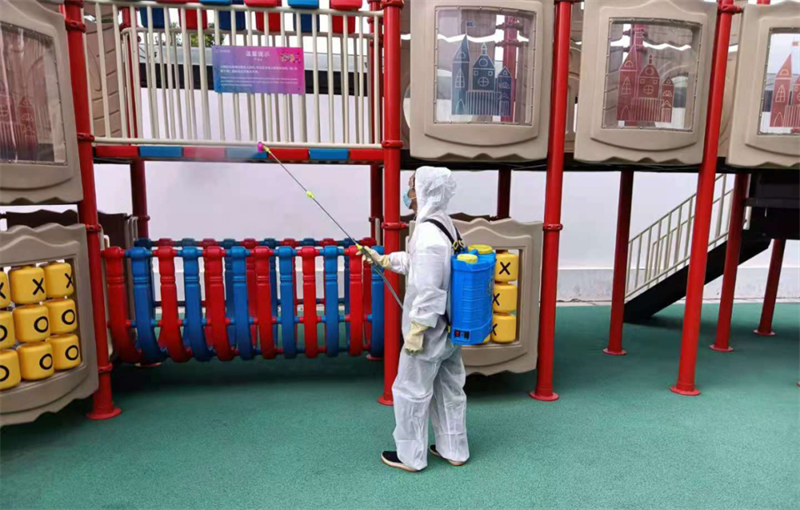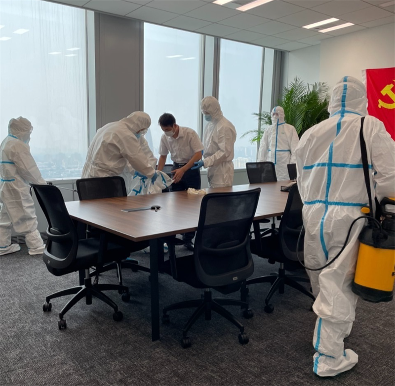 針對(duì)園區(qū)、案場、寫字樓、學(xué)校等多個(gè)項(xiàng)目,嚴(yán)格遵循防疫工作標(biāo)準(zhǔn),對(duì)電梯、樓道、垃圾桶、車庫、出入口、兒童設(shè)施等公共區(qū)域堅(jiān)持每日進(jìn)行全覆蓋、高頻次消毒,對(duì)商寫、學(xué)校等重點(diǎn)區(qū)域一天不低于兩次消毒作業(yè),不放過任何一個(gè)衛(wèi)生防疫死角。
