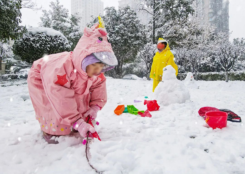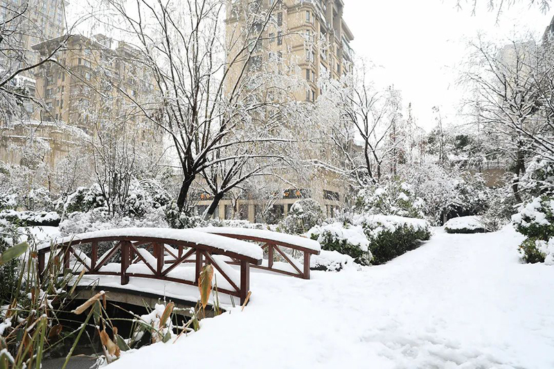 水面上結(jié)了晶瑩的冰紋,洋洋灑灑的白色“羽毛”,為華地社區(qū)蓋上了一層薄薄的“天鵝絨”。堆雪人,打雪仗,成為了社區(qū)里充滿趣味的風(fēng)景。