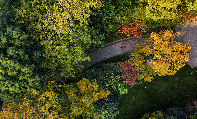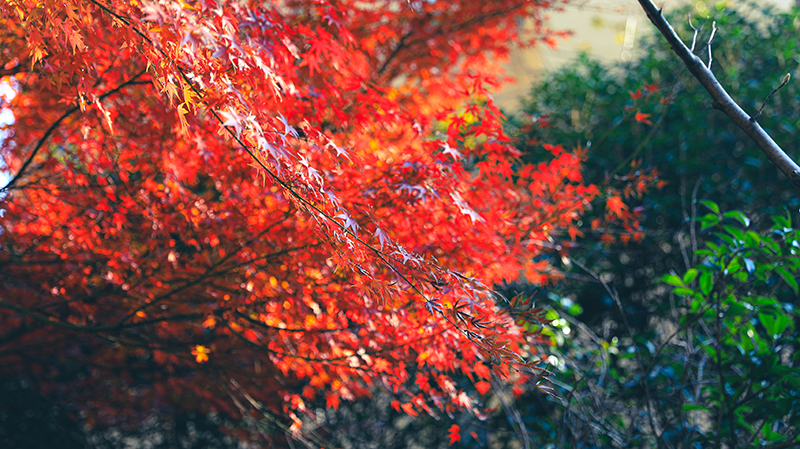 “霜染鴉楓迎日醉”,和煦陽光灑滿楓葉,如生命之火輕盈躍動,以經(jīng)霜不改蓬勃的風(fēng)姿溫暖過路歸人。