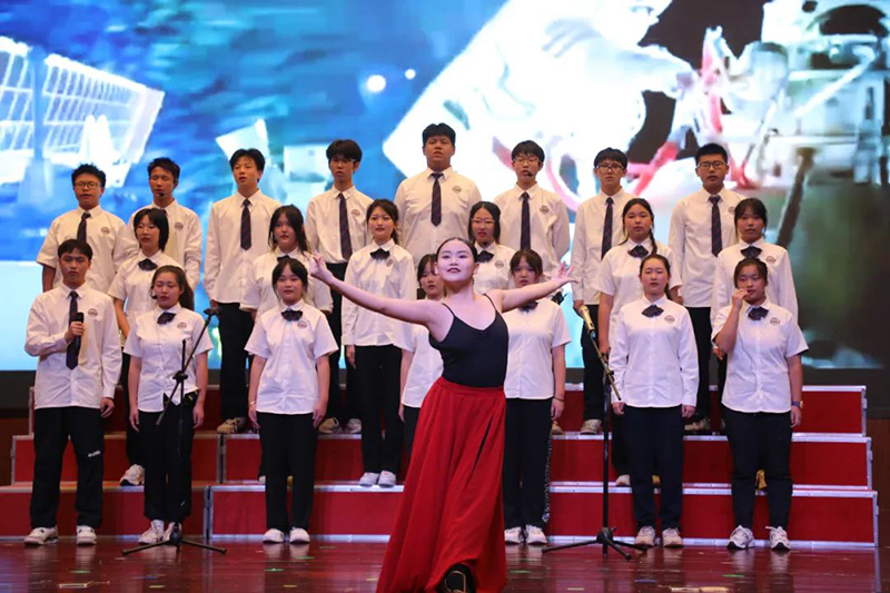 在英皇樂團(tuán)演奏《我的祖國(guó)》的悠揚(yáng)樂聲中拉開活動(dòng)序幕 ,同學(xué)們興致昂揚(yáng),自信登臺(tái),展現(xiàn)了新華學(xué)子積極、優(yōu)雅的精神風(fēng)貌,每個(gè)節(jié)目都精心準(zhǔn)備,完美將致敬祖國(guó),熱愛祖國(guó)的情感呈現(xiàn),引得臺(tái)下觀眾陣陣掌聲。